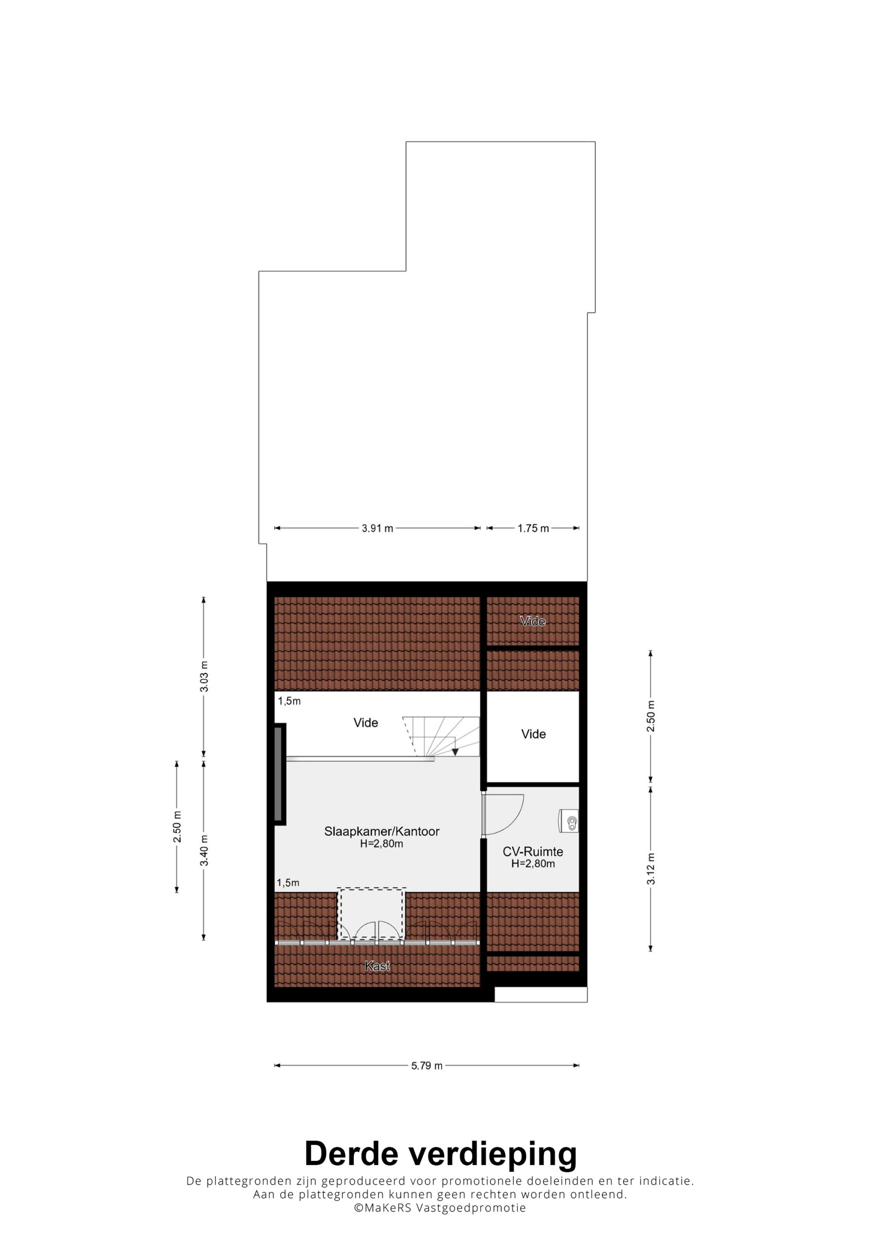 Deze ruimte staat in open verbinding met slaapkamer V en is ingericht als entresol van 391 x circa 340 cm, met praktische inbouwkasten. Vanuit hier is de bergruimte van 312 x 175 cm bereikbaar, waar ook de cv-ketel is geplaatst (Netfit Topline, 2009, eigendom).