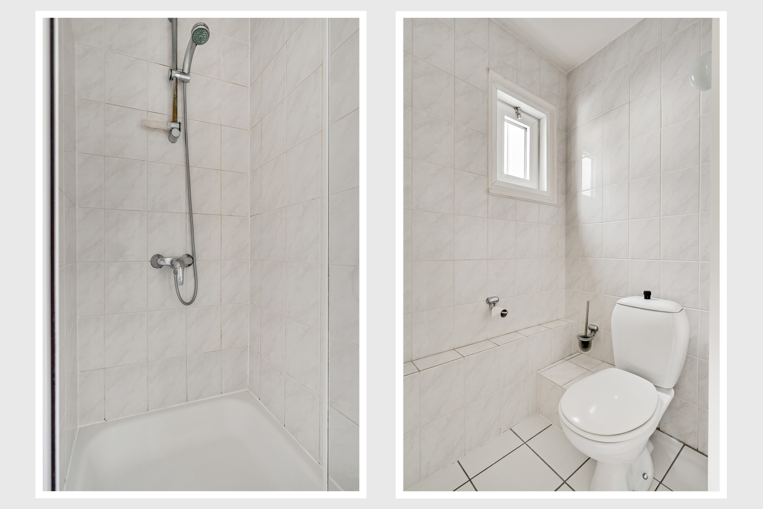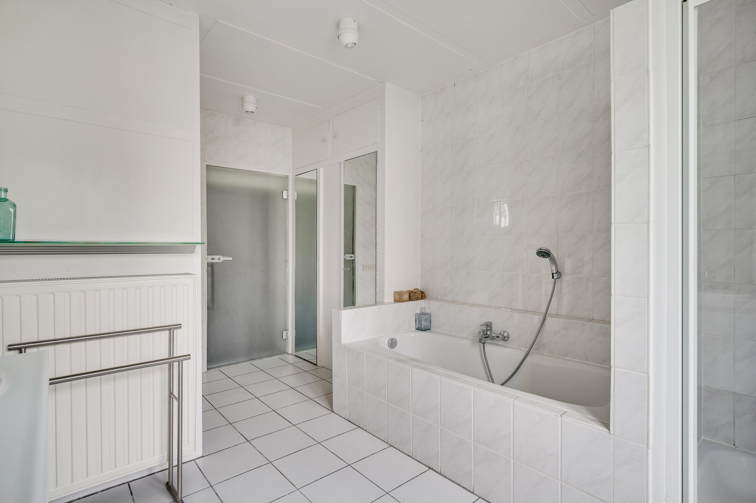 Op de eerste verdieping vindt u een tussenbordes dat toegang geeft tot de badkamer. De badkamer (430 x 300 cm) is uitgerust met een ligbad, inloopdouche, vaste dubbele wastafel met meubel, ingebouwde kastruimte en een toilet.