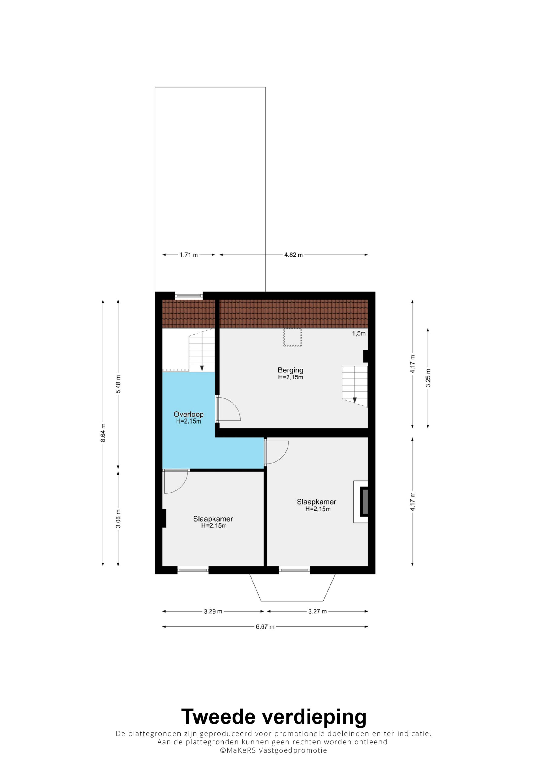 De derde verdieping bestaat uit een zolder van ongeveer 27 m².