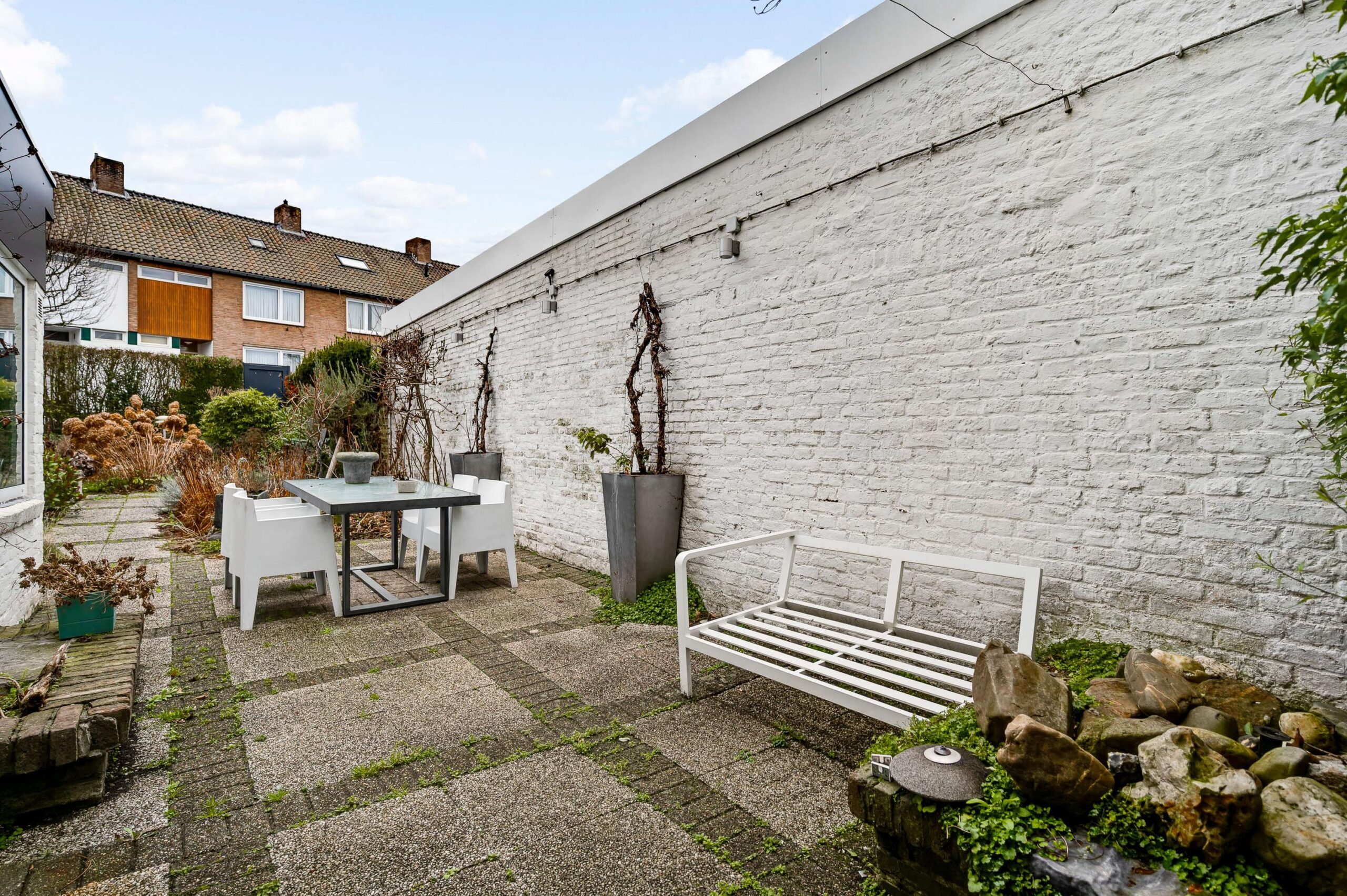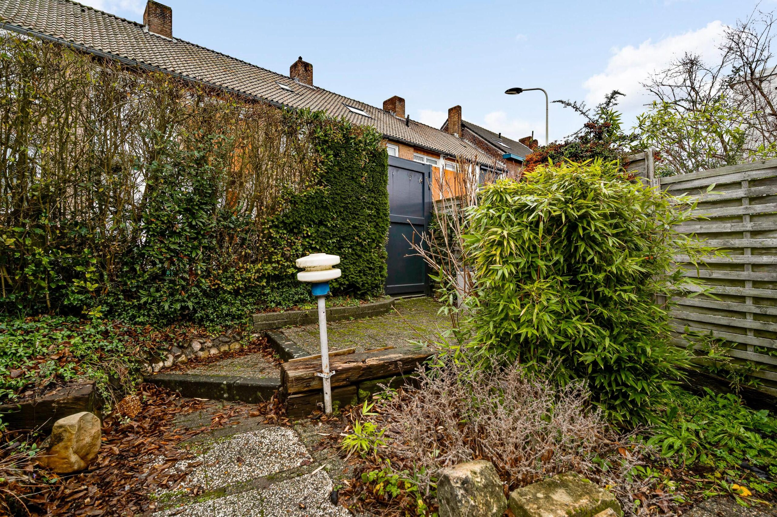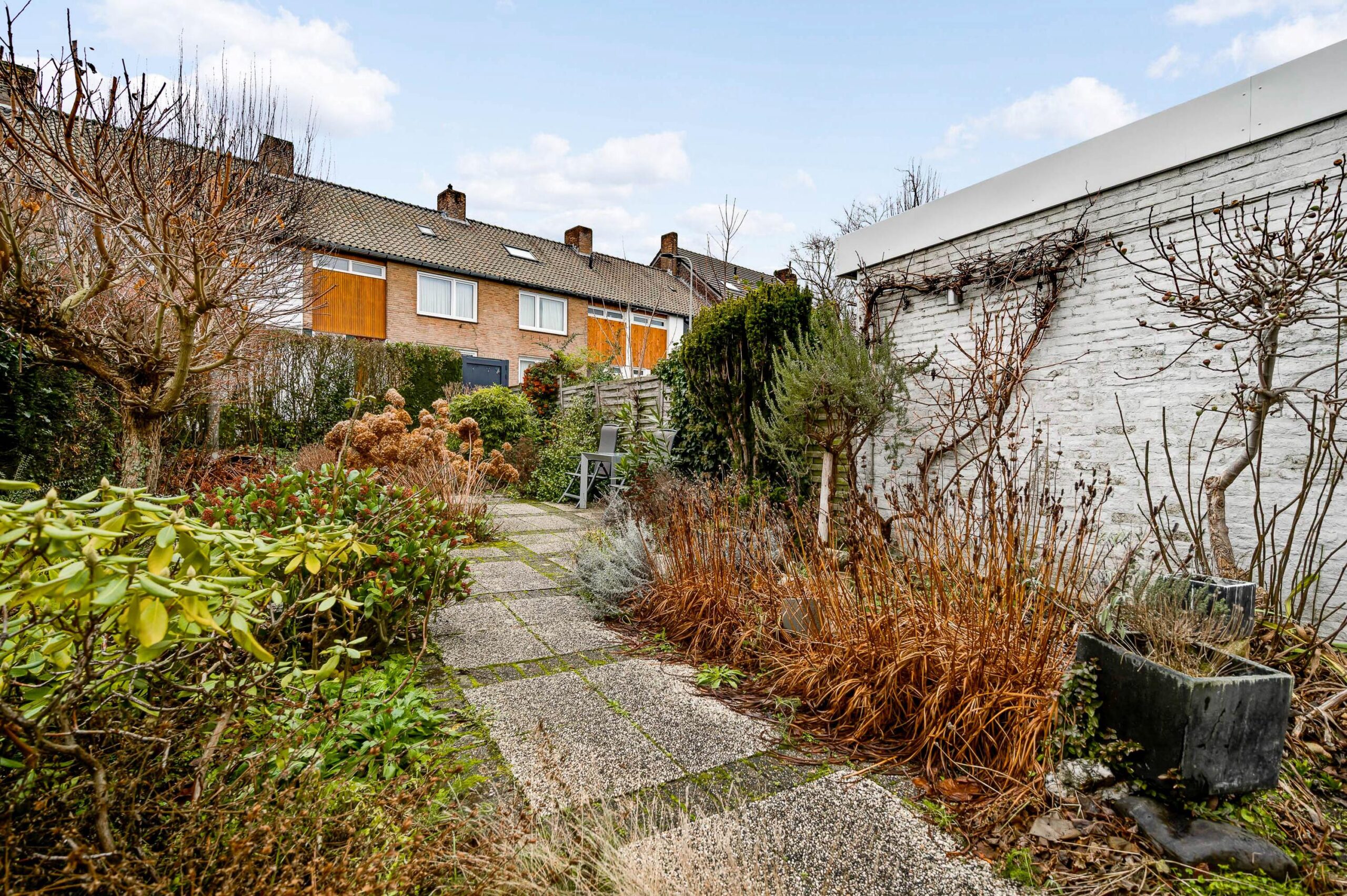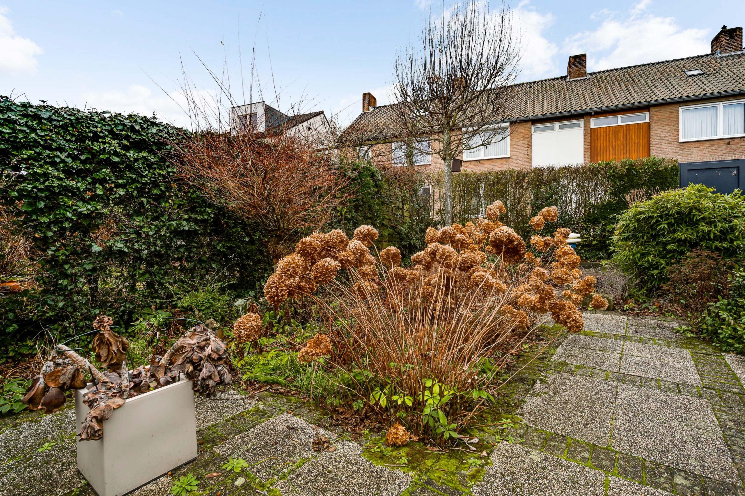 De voortuin en de diepe achtertuin van circa 102 m² zijn fraai aangelegd. De achtertuin ligt op het westen en beschikt over een achterom naar de Burg. Ceulenstraat.
