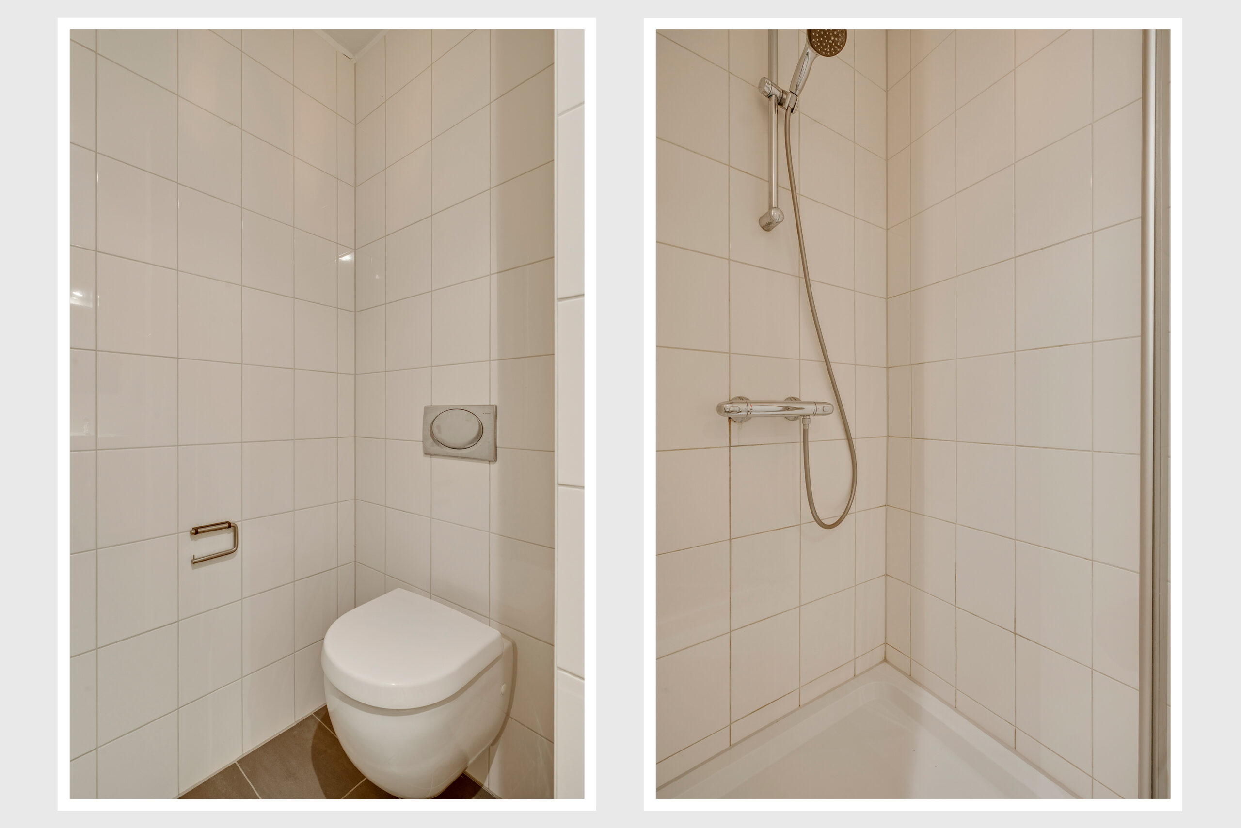 Badkamer I: 239 x 187 met een douchecabine, wandcloset en vaste wastafel.
